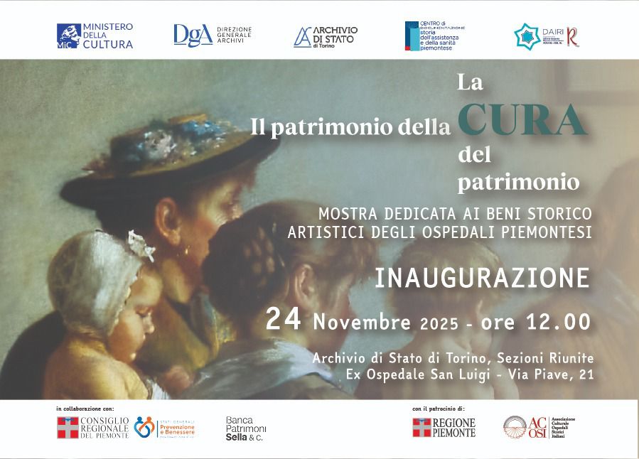 L’Archivio di Stato di Torino e il Centro Documentazione Storia dell’Assistenza e della Sanità Piemontese (SASP) del Dipartimento Attività Integrate Ricerca e Innovazione Regionale (DAIRI-R) presentano la mostra Il patrimonio della cura. La cura del patrimonio, un percorso espositivo pensato per valorizzare e rendere accessibile alla comunità il ricchissimo patrimonio custodito nei luoghi di cura della Regione.